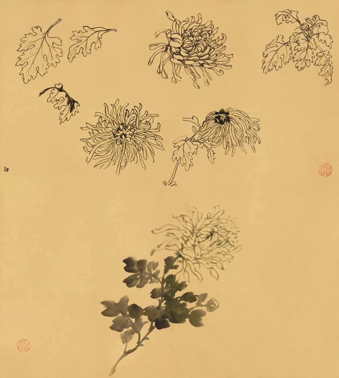 陆抑非课徒稿·菊花欣赏