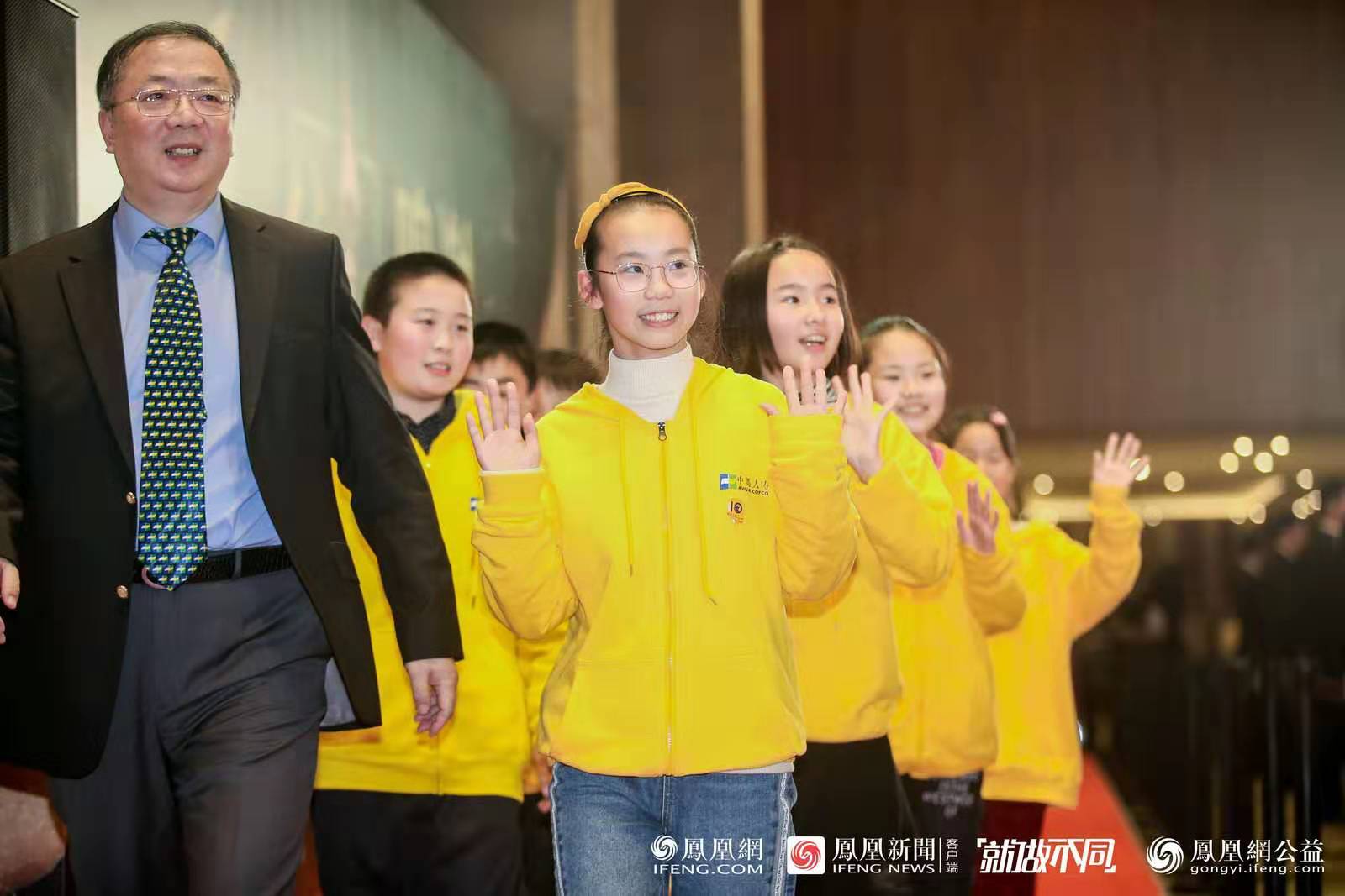 图:中英人寿副总裁马旭携手星星点灯公益项目儿童踏上红毯