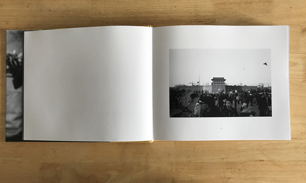 集子里的第一张照片拍的是一处广场,最前面的老人、女人和孩子望向一边,仿佛有什么突发事件吸引了他们的目光。人们手里拿着气球和风筝,城墙上飘扬着的姑且认为是红色的旗子(事实上韩磊的这些照片都是黑白,红色仅为猜测),看起来正是个节庆时刻。