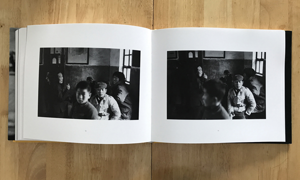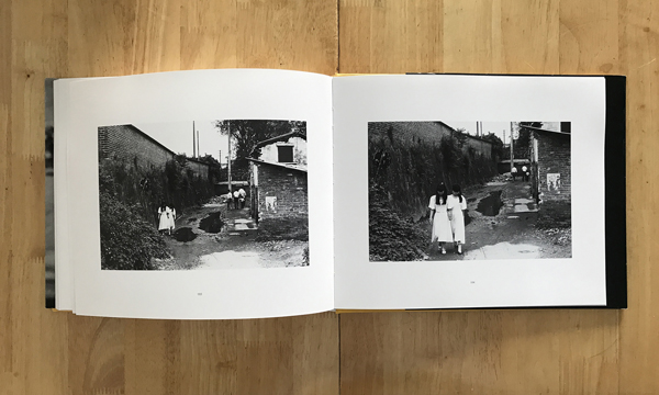 作品集整体从历史的厚重,跨到一个在视觉上更令我熟悉的状态,其中不乏几张我十分偏爱的照片。如第六章(也就是我取名为“人的状态”或“朝着某个方向”的那个章节,这里的说明仅为让照片更容易找)的前面几幅照片。一个女孩儿羞涩地盯着镜头,眼神清澈,它唤起了淳朴的不经修饰的美,而后的一张照片里,女学生迈向漆黑的楼梯,接着是左右两张同场景取景的照片,积水的土路上,两拨人擦身而过。这连续的感觉,真诚的,隐秘的,方向的,犹如一段成长,莫名令人感叹。
