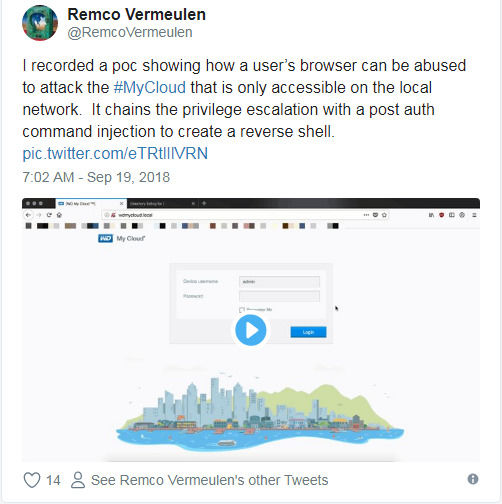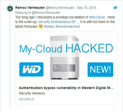 作为一款众所周知的 NAS 设备,西部数据的 My Cloud 系列屡次因安全问题而登上报端。漏洞利用者再次证实了这一事实,称其也向西数汇报了同样的漏洞,甚至纪录了整个过程。