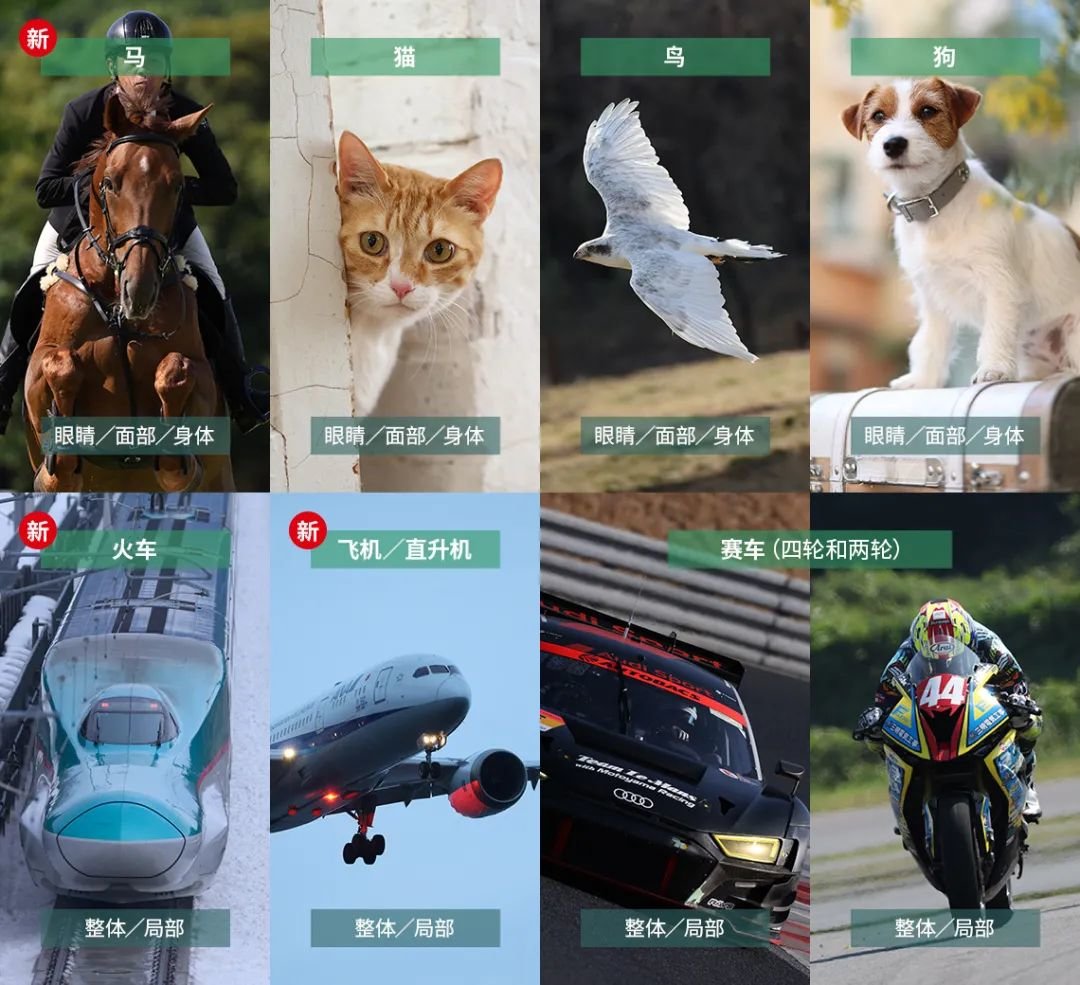 前文提到新处理器都在加强AI深度学习能力,普遍应用在追焦的对象检测上,增加更多被摄体。佳能EOS R6 Mark II新增对马、火车、飞机、直升机的检测。奥之心OM-1除了E-M1X所能识别的赛车、蒸汽机车、摩托车、飞机、直升飞机、火车与飞鸟等之外,识别种类增加到猫狗等动物。富士X-H2S、X-H2以及X-T5“第五代”机型可自动检测和追踪多种类型的拍摄对象,除了会检测并自动追踪人脸/人眼,还会检测动物、鸟类、汽车、摩托车、自行车、飞机和火车。