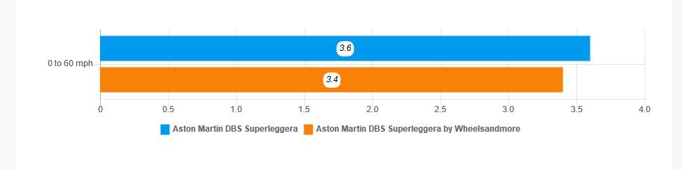 接下来让我们对比原装和改装的区别,Wheelsandmore改装的DBS Superleggera的5.2升V-12发动机产生818马力和760磅英尺的扭矩,而标准型号的V-12产生"只有"714马力和664磅英尺的扭矩。这是一个巨大的增长,这是阿斯顿马丁旗舰车型所具备的那种动力和性能能力的基础。标准DBS Superleggera可以在3.6秒内从0加速到62英里/小时。是的,Wheelsandmore的DBS Superleggera要快0.2秒。在一个每十分之一秒都很重要的世界里,对于一辆超级跑车来说,这算得上是显著提高的加速性能。