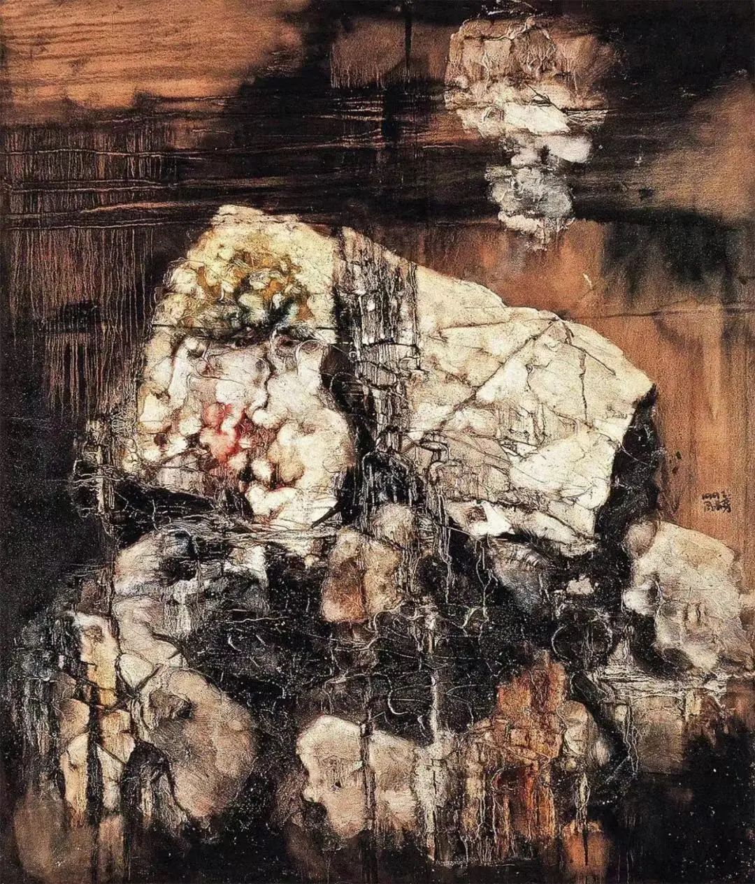 周春芽(B.1955年)《石头系列—与石头联接的树》