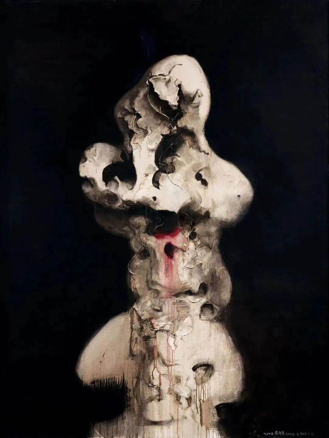 周春芽的红石系列不但具有现代艺术的高度形式感,同时亦从另一个侧面体现了“寄情山水”的文人意趣和西方古典绘画中的浪漫主义情怀。