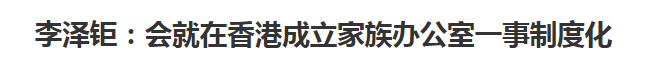 去年,李嘉诚长子、长和系主席李泽钜首次公开家族办公室进程: