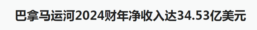 巴拿马运河管理局公布的年报显示,巴拿马运河2024财年(2023年10月1日至2024年9月30日)净收入达34.53亿美元,折合人民币250亿元。
