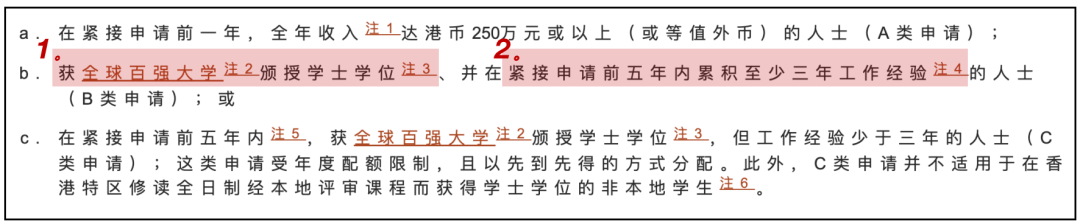 换句话说,香港人才引进更多吸引的人,还是这些顶尖大学毕业且至少有三年工作经验的人