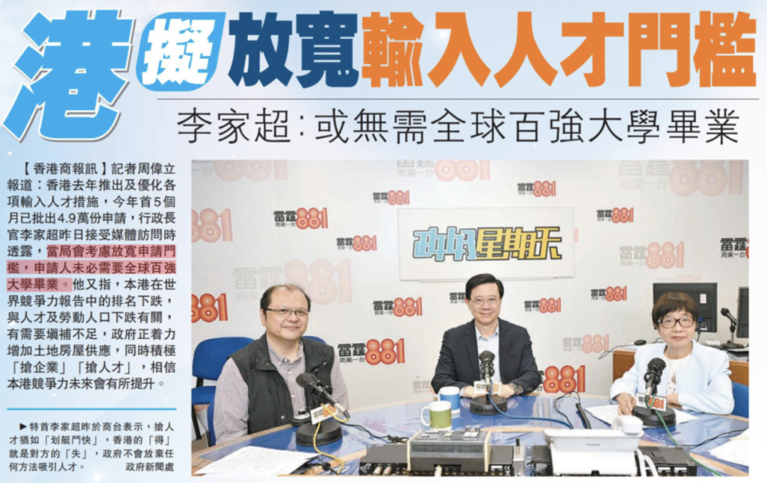 香港特首李家超就公开喊话要在“高端人才通行证”计划准备进一步放宽申请门槛: