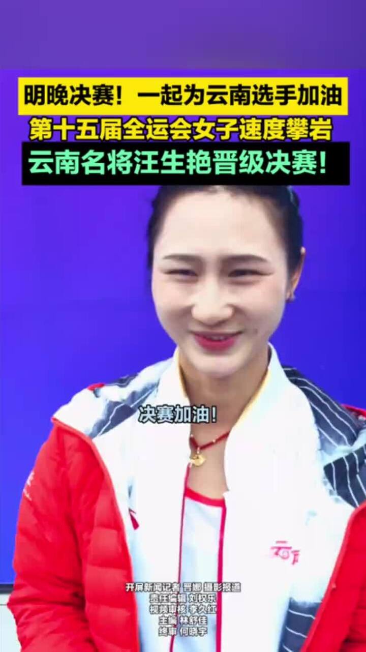 明晚决赛!一起为云南选手加油,第十五届全运会女子速度攀岩,云南名将汪生艳晋级决赛!#体育文化闪耀十五运会 #开屏新闻直击十五运 #十五运云南时刻 #十五运会
