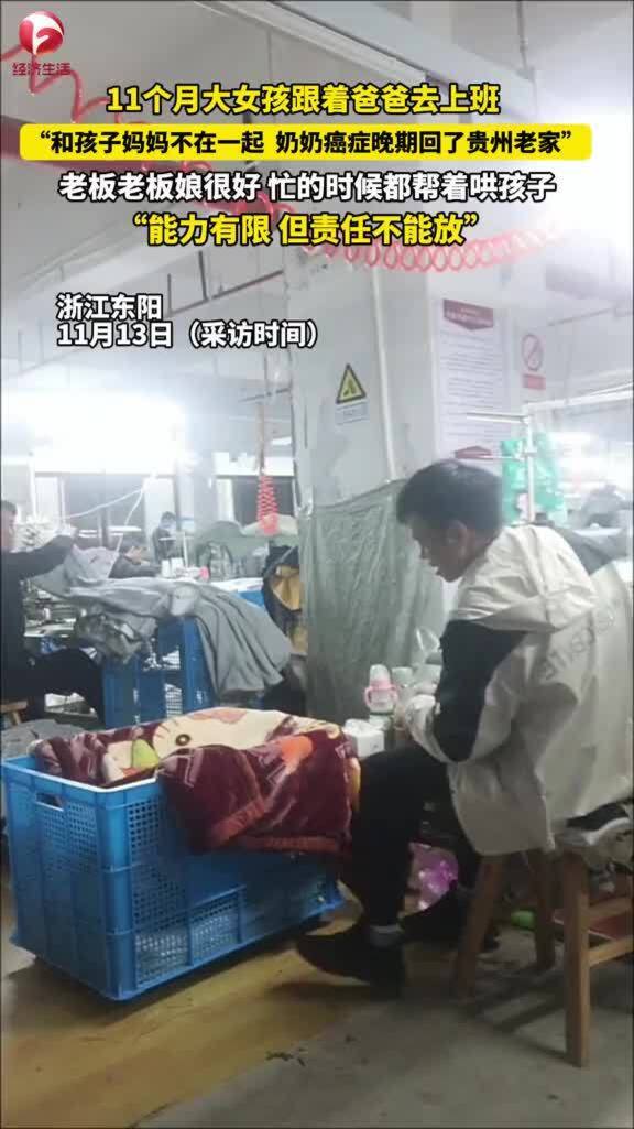 11个月大女孩跟着爸爸去上班!“老板老板娘有时都帮着哄孩子”#人生百味自己体会