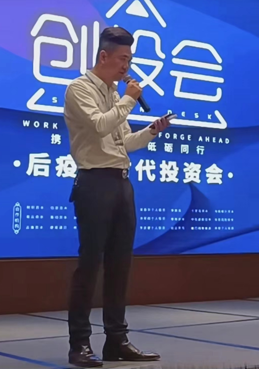 像这家研发体育娱乐用品公司,他正向下面的一排投资方代表介绍