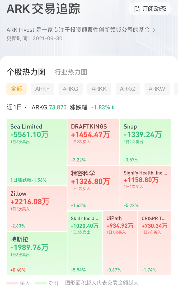 热力图示例(注:热力图数据来自ARK官网,上文ARK交易追踪数据来自ARK官方交易邮件,数据可能略有偏差)