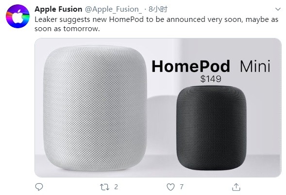 除了以上内容,还有爆料者表示,苹果将很快发布HomePod Mini版本,售价149美元(约合人民币1040元)。