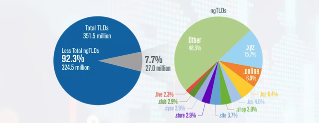 ngTLD(新顶级域名) 域名注册总数为2700万,与第一季度相比,域名注册增加了 70 万,或 2.6%↑ 。