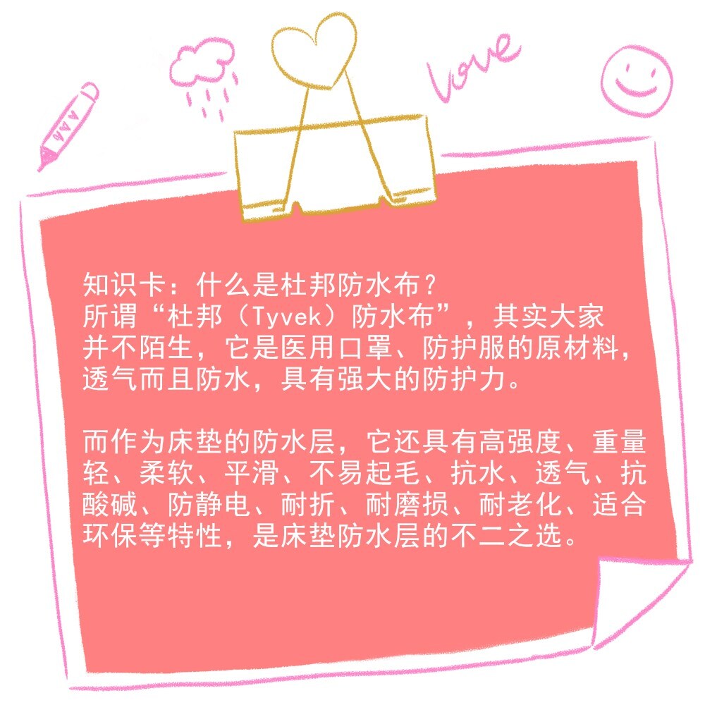 带有杜邦防水布,能完全隔绝异物渗到床垫内部。
