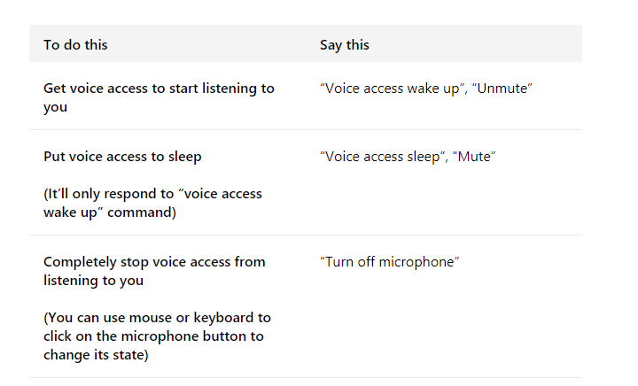语音访问还没有完全与屏幕阅读器(如 Narrator)兼容,同时运行这些,你可能会遇到差距或意外的行为。