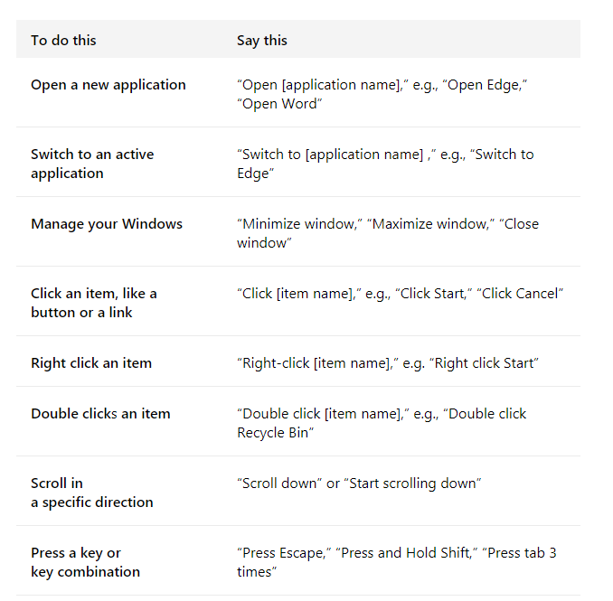 你可以导航并与 Windows 互动,包括用你的声音打开和切换应用程序。您还可以通过语音模拟您的标准输入,如键盘和鼠标。
