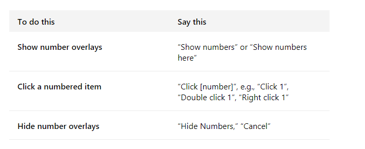 语音访问数字覆盖使得与没有名称的项目进行互动成为可能,而且当一个命令有多个匹配项目时,它们也使你处于控制地位。