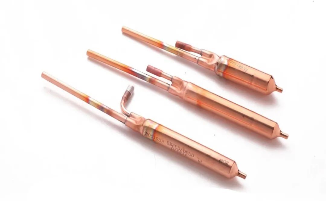 干燥过滤器的外壳通常用紫铜管收口成型,两端设有进出接口,进口端为粗金属孔板,出口端为150-300目细金属滤网,这样的设计能够有效地过滤掉冷媒中的杂质。内部则填充有高效分子筛,这些分子筛具有极强的吸水能力,能够有效地去除冷媒中的水分。当制冷系统运行时,冷媒会流经干燥过滤器。在这个过程中,杂质会被过滤网拦截下来,而水分则会被干燥剂吸收。这样,干燥过滤器就起到了保护制冷系统免受杂质和水分侵害的作用。