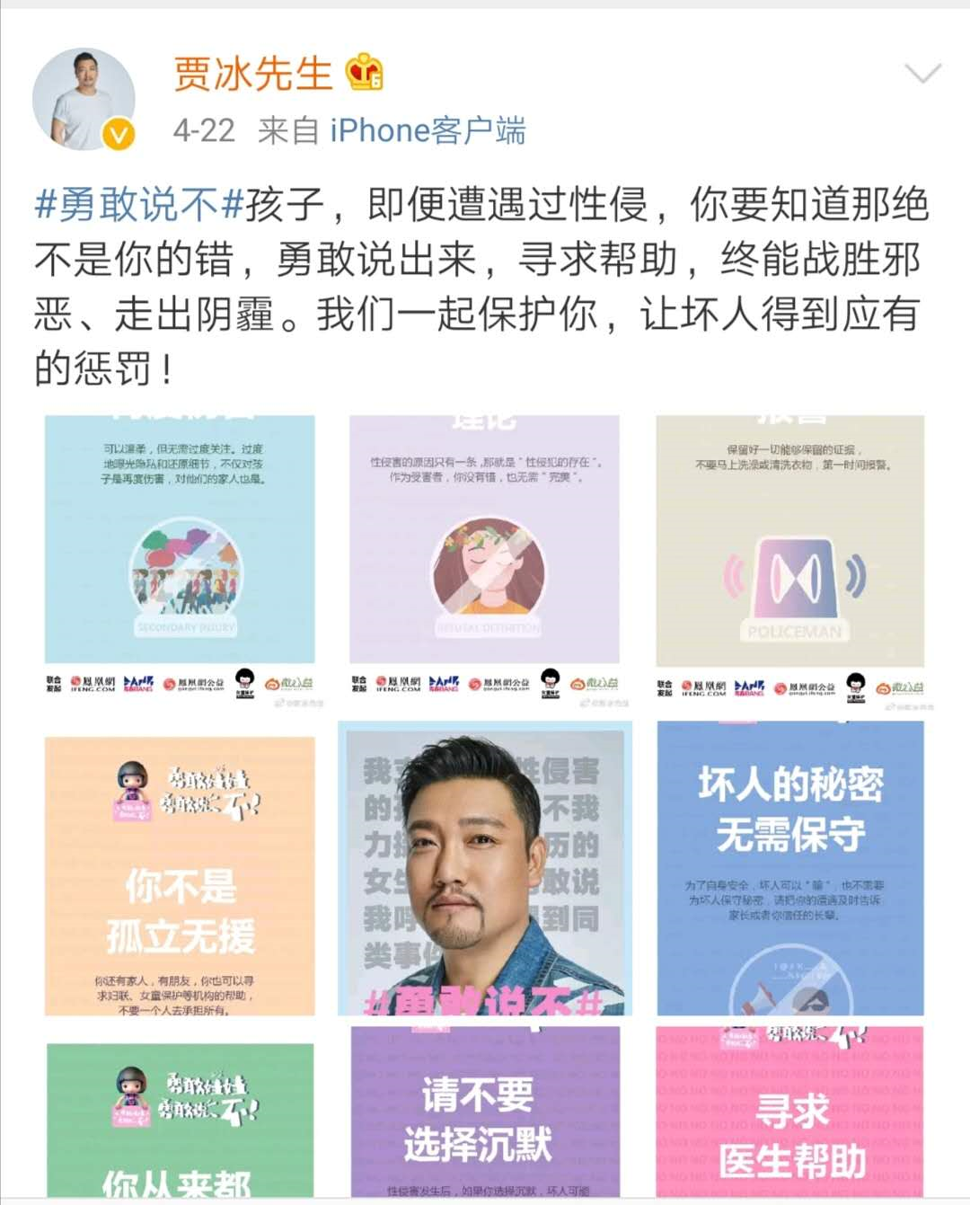 在4月14日,谢娜和女童保护基金联合发起话题#勇敢说不#后,4月22日,凤凰网公益、凤凰网青春BANG、女童保护基金和新浪微公益联合发起“勇敢娃娃,勇敢说不”公益倡导活动。