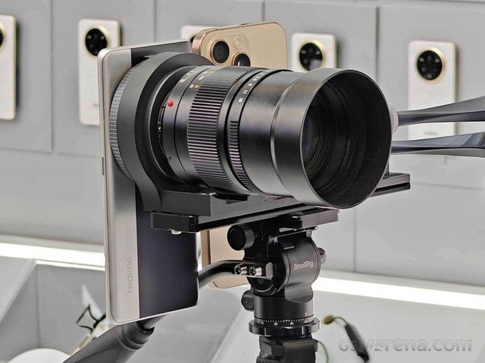 想到外接镜头的不止小米一家,真我也在本届MWC 2025上带来了首款可更换镜头概念机—真我Ultra。不过它的产品思路和小米还是有着区别的,小米是外接一整套的光学系统,包括传感器和镜头等,而真我这款则是使用手机本身的传感器,然后外挂一个镜头。