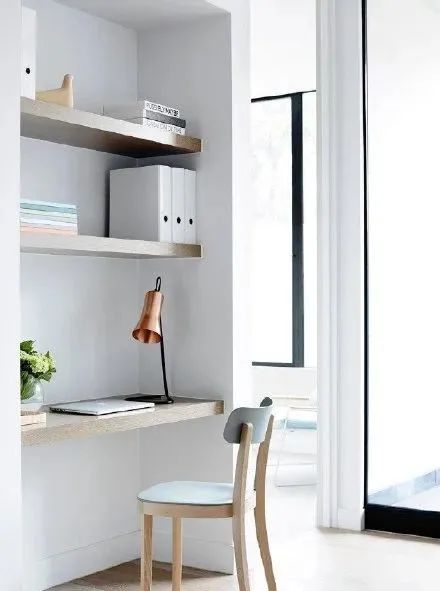 书房小: 有些户型的书房小到根本做不成书房,顶多沦为家里的杂物间。如果家里实在需要书房,又放不下太多的书架和家具的话,可以试着做成入墙式,或者利用墙面、拐角空间,来定制需要的家具;
