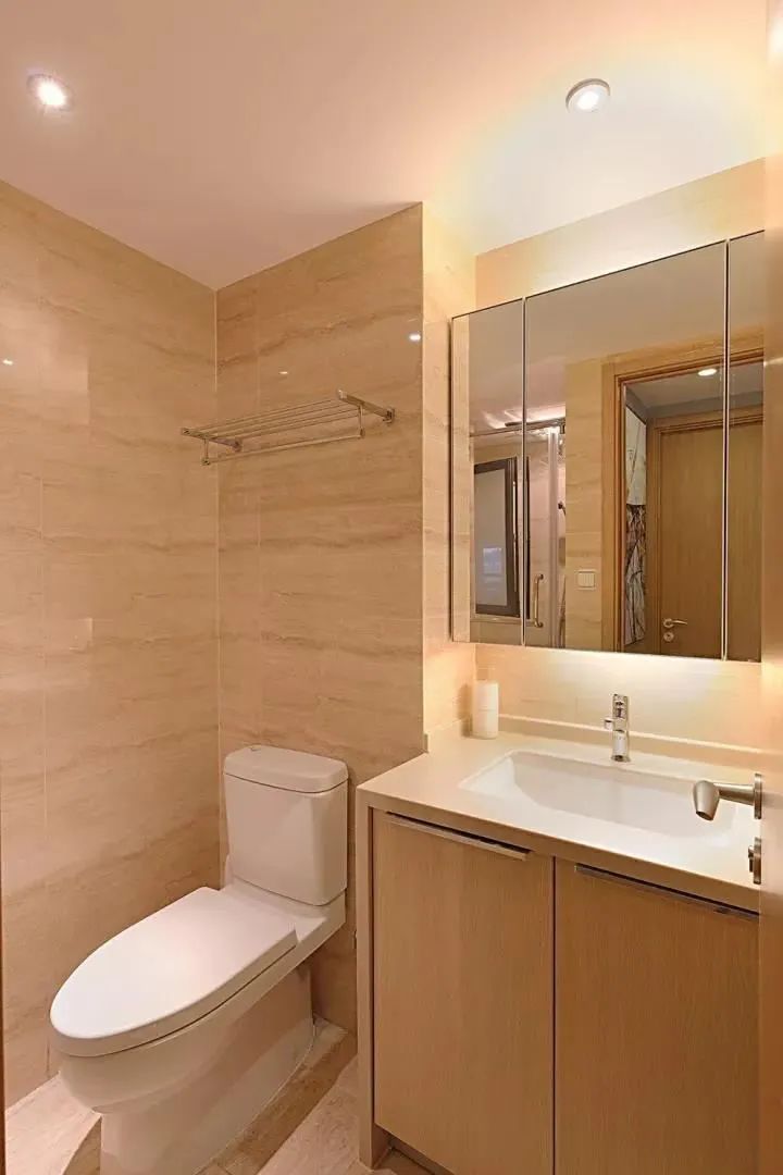 浴室柜挡光: 洗手间的光线也很重要,要是浴室柜会挡光,可以在浴室柜下方加一组光源,保证日常所需的地方光线充足;