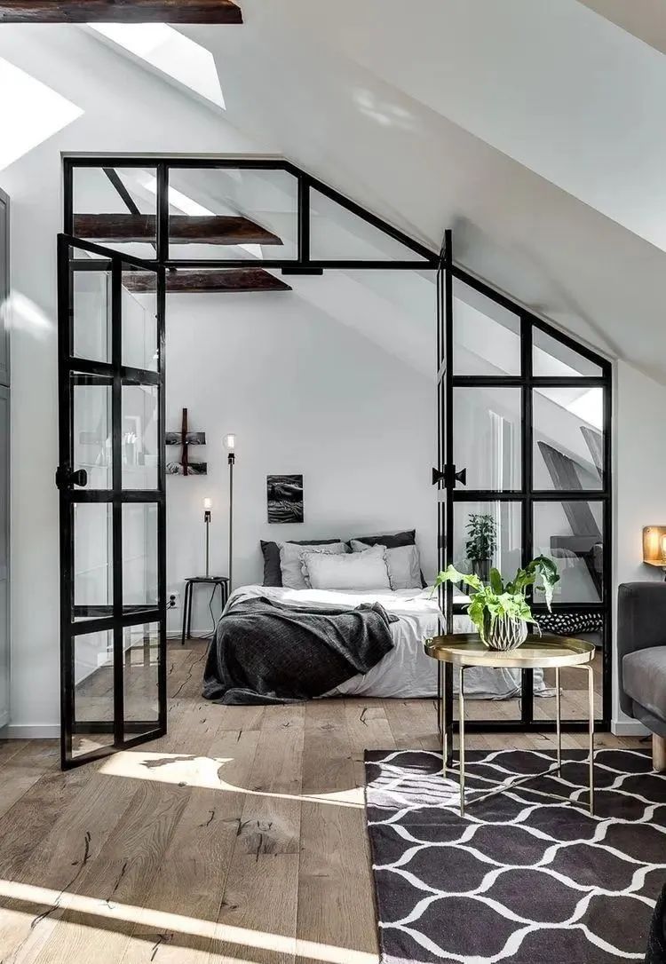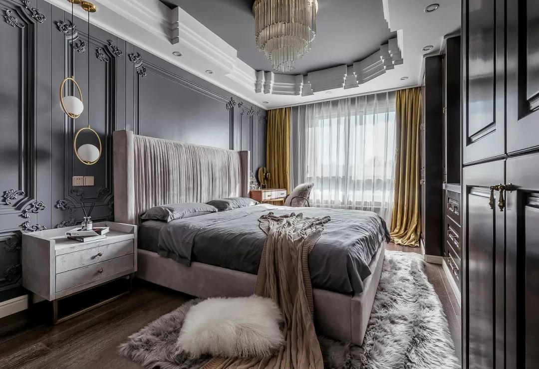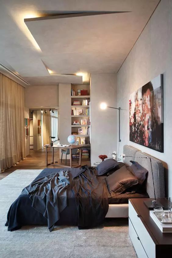卧室斜顶: 睡觉很有压迫感,常住很可能会影响到情绪。要是把天花做的有些设计感,问题也就迎刃而解了。不仅颜值高,还能缓解到一些紧张感;