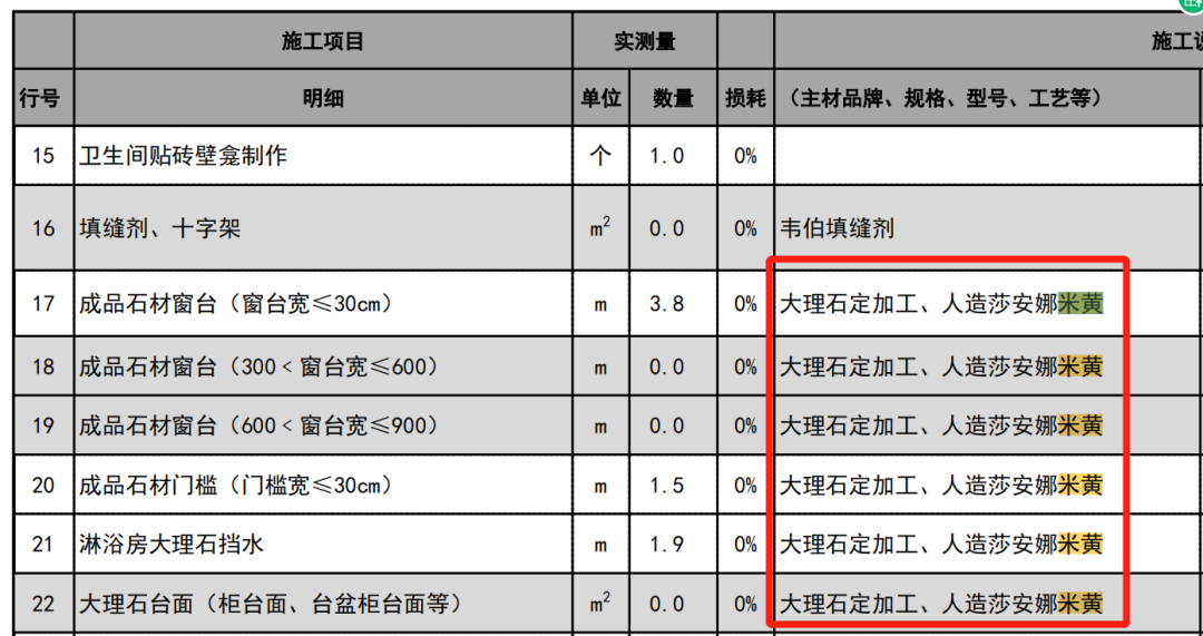 合同里写的窗台石颜色是:人造莎安娜米黄