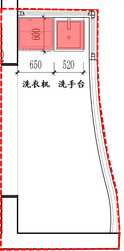 我的洗衣机靠客厅一侧,洗手台向阳台外侧,大概是这样的