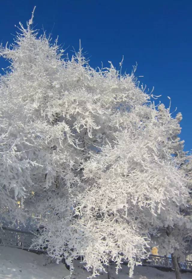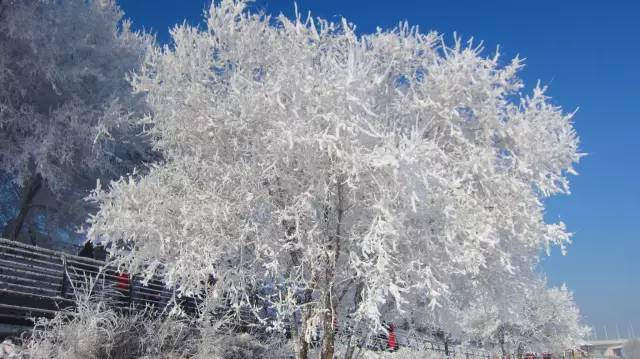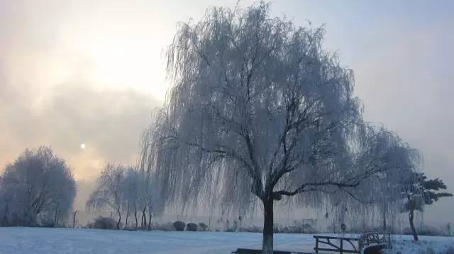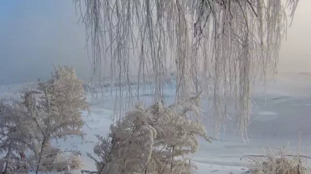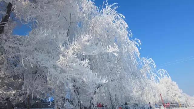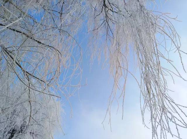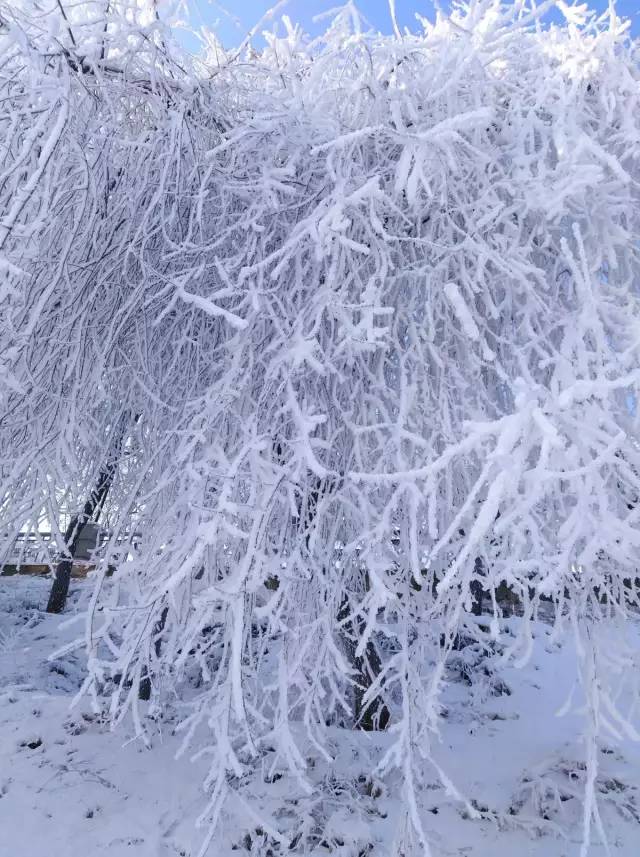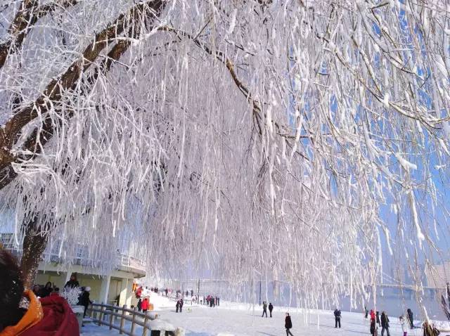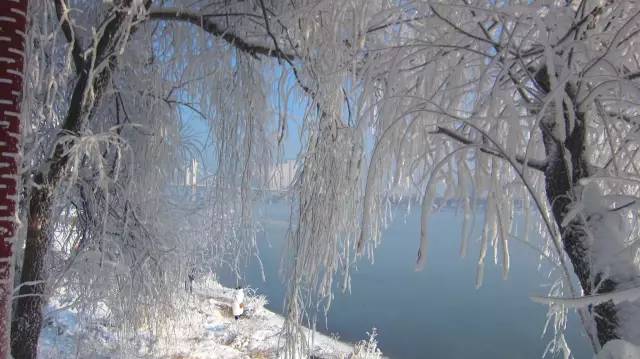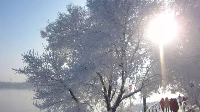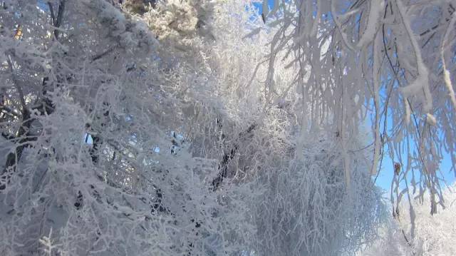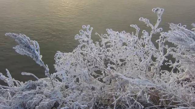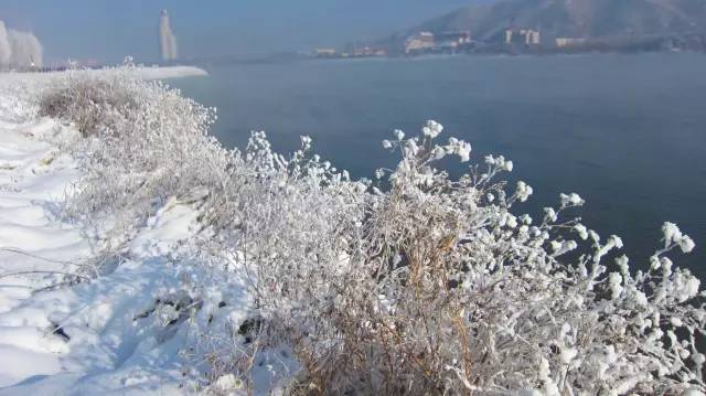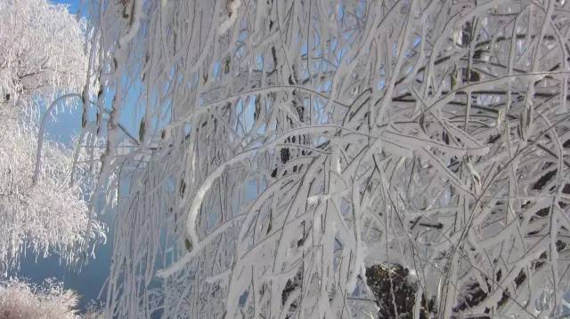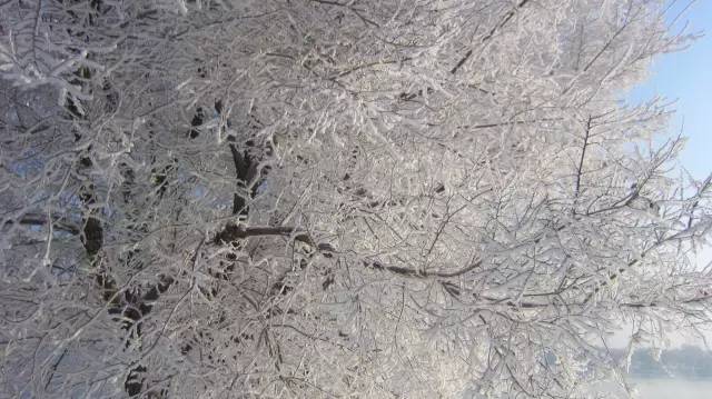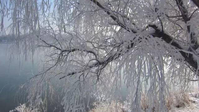 2019年农历腊月以来,北国江城满族发源地吉林市大地白雪皑皑,满族母亲河松花江沿岸雾凇频繁出现。这是丰满发电厂大坝重建运行、松花湖“一湖双坝”景观呈现的头一年雾凇盛景,事实解除了当初大坝重建可能影响雾凇景观的担忧。吉林雾凇是冰封的松花湖下零上4°C的湖水通过发电厂水轮机流入松花江,形成自丰满大坝起至乌拉街雾凇岛止的近70公里不封冻江面,江水中升腾的水蒸气在零下20°C以下的严寒中,由气态直接凝华成固态白色不透明颗粒状结晶沉积物,漂浮粘着在沿岸附着物上积聚冻结,形成晶莹剔透、薄厚因地而异、浓密因物有别、洁白如冰似雪、为附着物披装挂银、美化附着物姿态的自然景观。因此,树木枝条和蒿草是雾凇最佳载体,松花江岸边及街路垂柳与雾凇岛的百年参天古榆历来是吉林雾凇的最美“模特”。