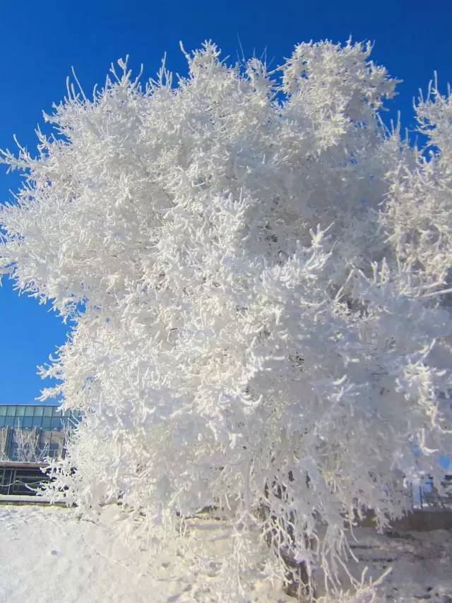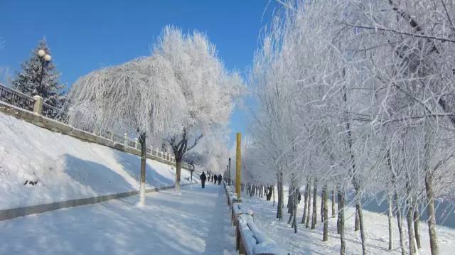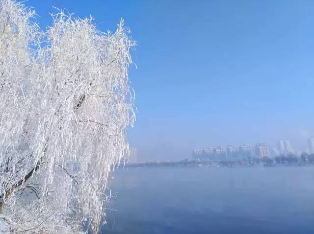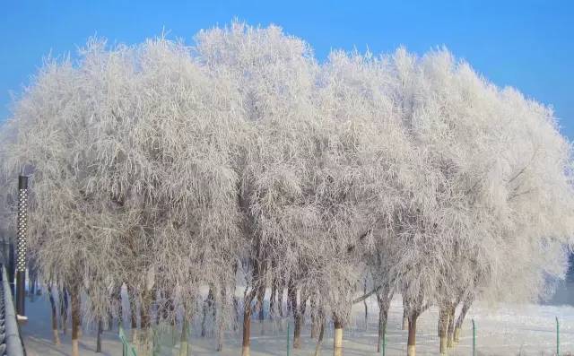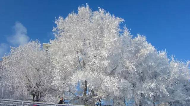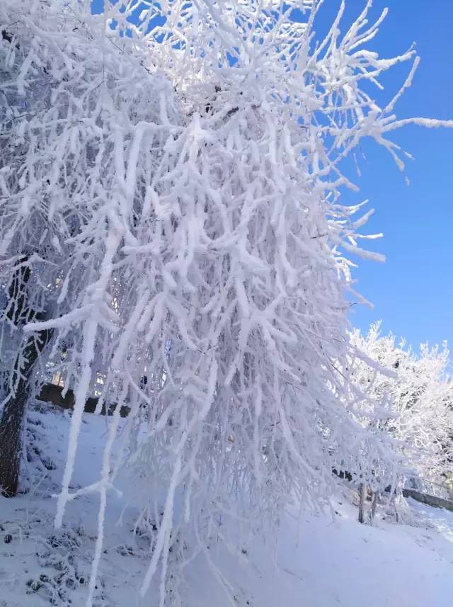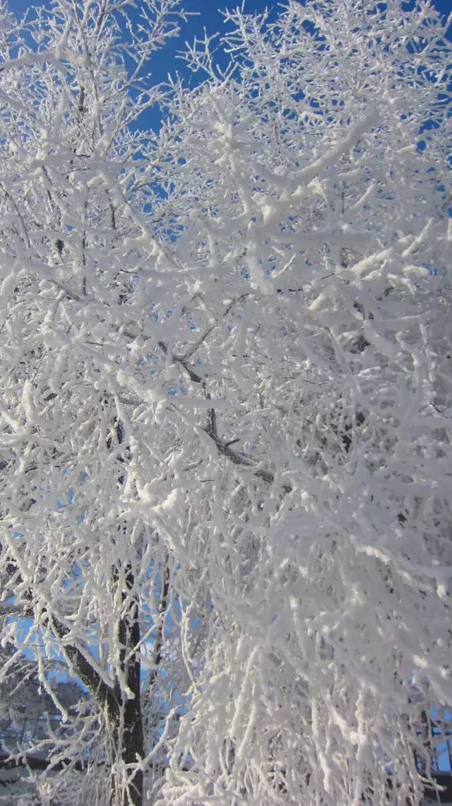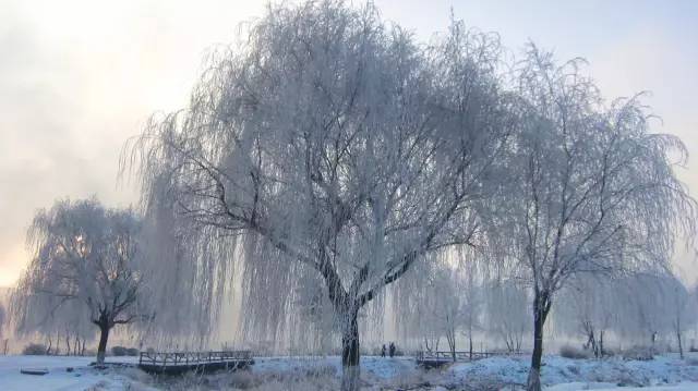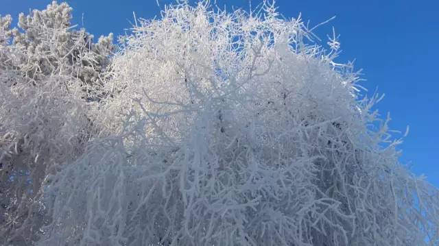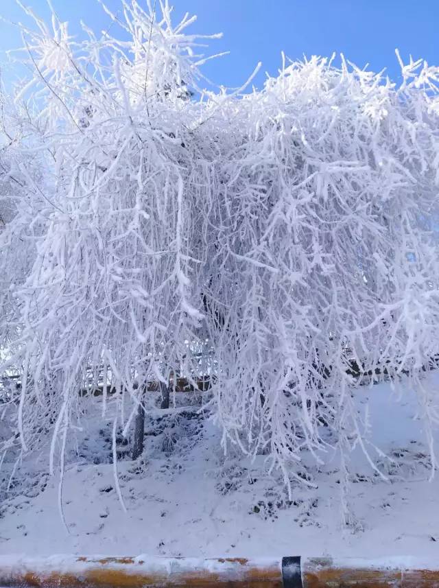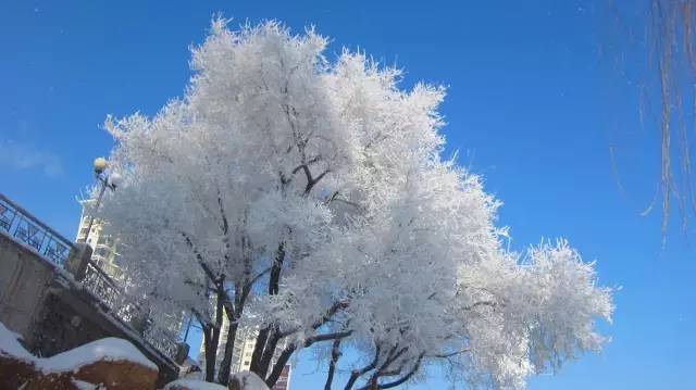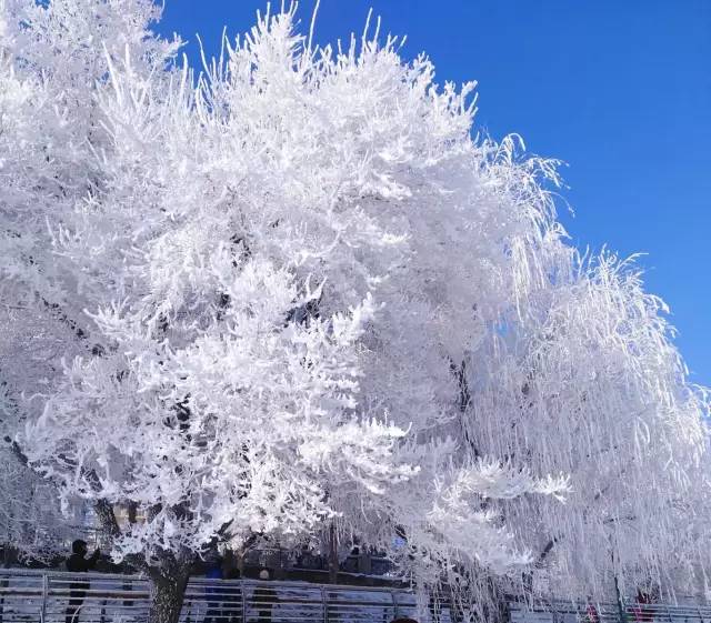 2019年农历腊月以来,北国江城满族发源地吉林市大地白雪皑皑,满族母亲河松花江沿岸雾凇频繁出现。这是丰满发电厂大坝重建运行、松花湖“一湖双坝”景观呈现的头一年雾凇盛景,事实解除了当初大坝重建可能影响雾凇景观的担忧。吉林雾凇是冰封的松花湖下零上4°C的湖水通过发电厂水轮机流入松花江,形成自丰满大坝起至乌拉街雾凇岛止的近70公里不封冻江面,江水中升腾的水蒸气在零下20°C以下的严寒中,由气态直接凝华成固态白色不透明颗粒状结晶沉积物,漂浮粘着在沿岸附着物上积聚冻结,形成晶莹剔透、薄厚因地而异、浓密因物有别、洁白如冰似雪、为附着物披装挂银、美化附着物姿态的自然景观。因此,树木枝条和蒿草是雾凇最佳载体,松花江岸边及街路垂柳与雾凇岛的百年参天古榆历来是吉林雾凇的最美“模特”。