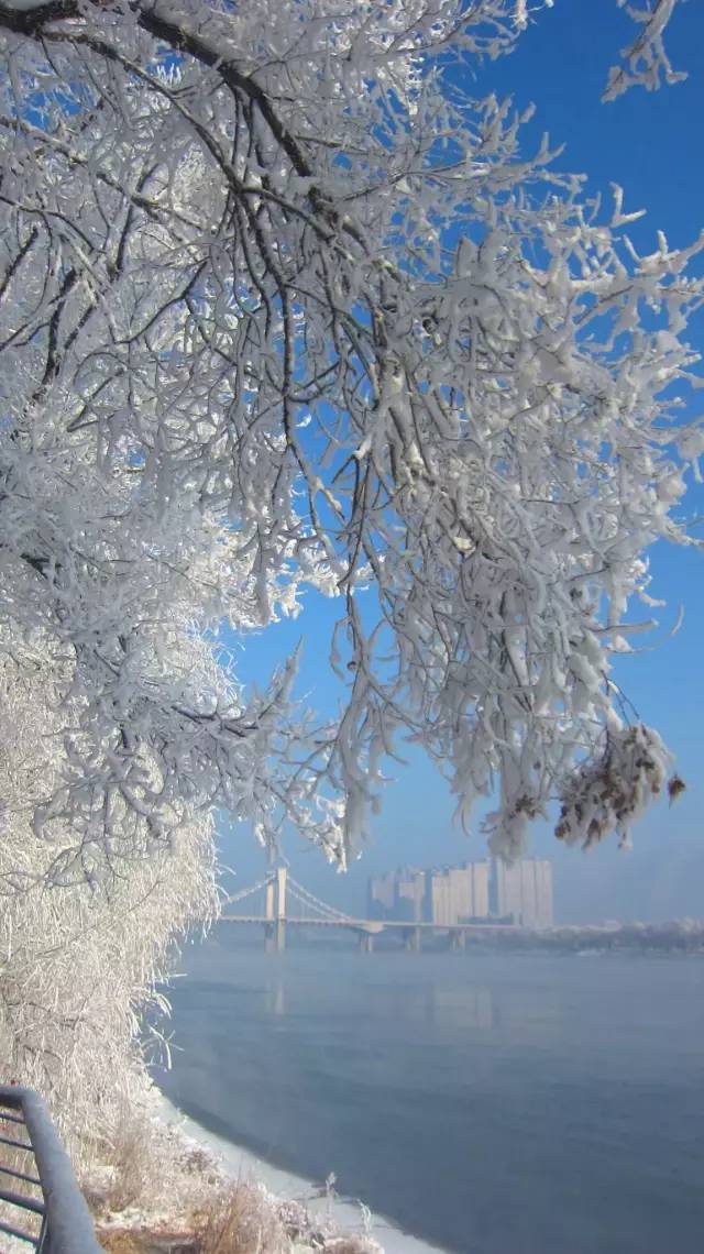 2020年元旦之前,吉林市连续多日出现大范围全流域雾凇,我两次到松江东路中段现场拍照,获得了看雾、看挂、看落花的数百张照片。现挑选一部分图片,发表如下: