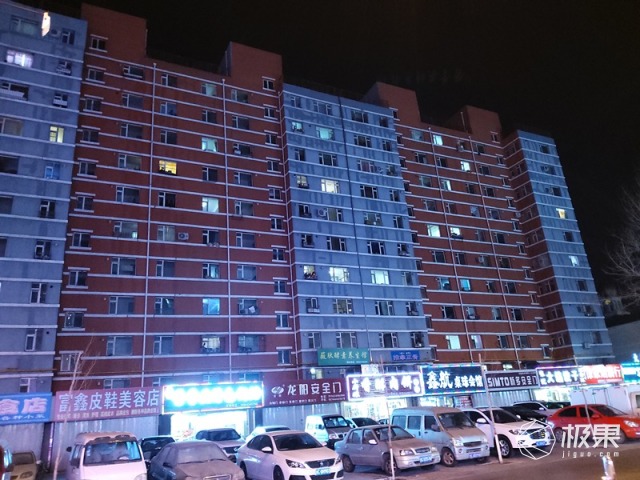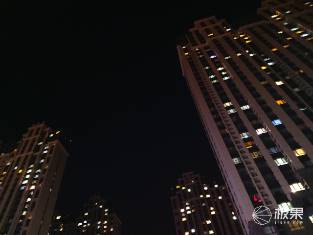 调节好焦点,即便高处的楼宇也能够拍的清晰。当然,远离灯光,或是提升曝光的部分,依旧有很多噪点和涂抹感,例如下图中的左侧部分。