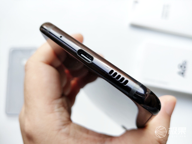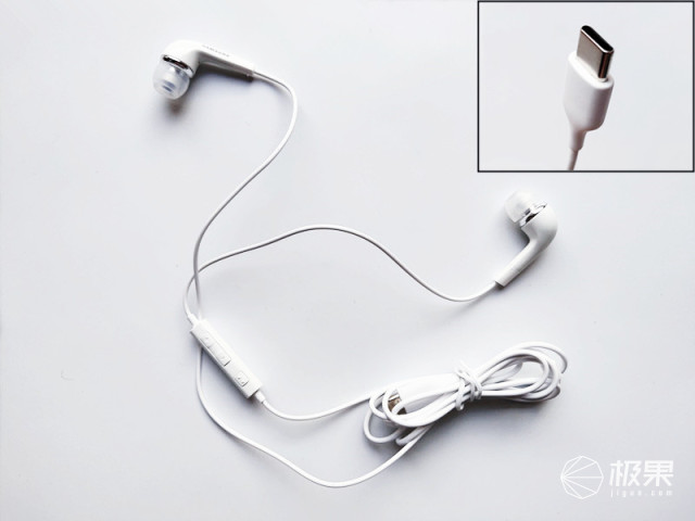 手机并未配有3.5mm耳机插孔,底部只有一个TYPE-C插口。好在手机自带TYPE-C线控耳机一副,不用额外购买。