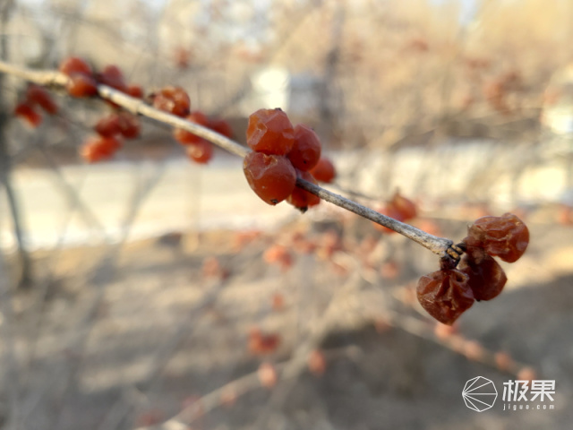 不过A8s拍摄微距比较细小物体的时候,有时无法准确对焦,下图是的红果比小指尖还小,笔者对焦了半天也无法成功,手动对焦也失败,焦点总是会自动跳到身后的树丛,这是聚焦最准确的一张,但放大看其实是有些糊了的。