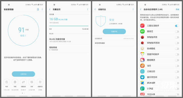 系统的管家软件也非常强大,基本上所有的功能都可以在这里找到。自启管理,杀毒,流量监控,骚扰拦截,完全不需要下载第三方APP,即可对手机实行全方位的监督与管理。