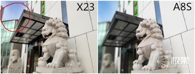 从下图中可以看出X23和A8s明显差别,在同样的光线条件下,X23的明亮度以及明暗细节的表现力度都要明显优于A8s,宽容度要好上不少,这也从侧面证明了X23的硬件配置要优于A8s。