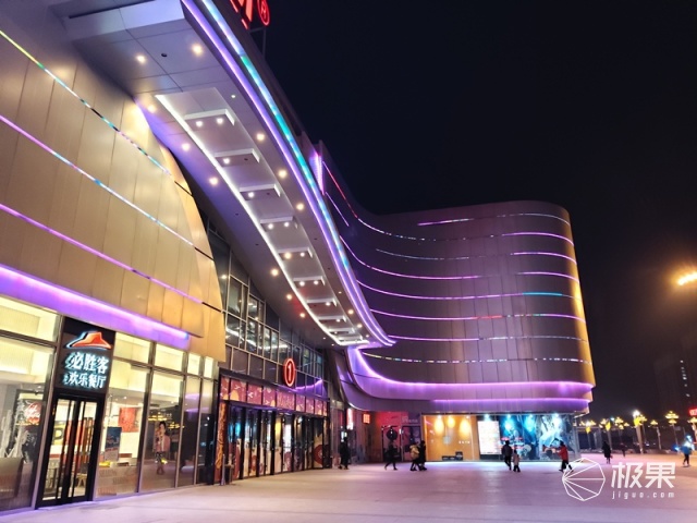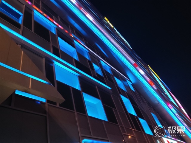 手机夜拍短板依然是宽容度,一旦遇到较亮的灯牌,或是光源比较丰富的环境,手机依然会充满炫光,亮处一塌糊涂,调节画质的唯一方法就是降低曝光,不过降低曝光过后,虽然灯牌能看清了,但其余部分却变得更暗,难以辨识。