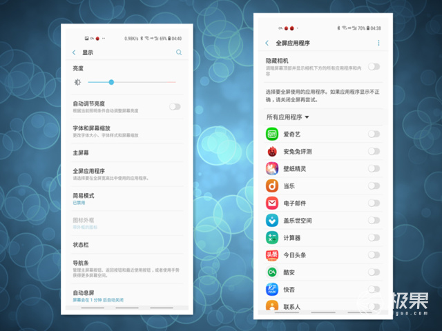 A8s只能进行常规的字体大小、屏幕缩放等功能设置,可以对单个应用进行全面屏效果设置,而类似护眼模式,调节色温,夜间模式等,则都不支持。