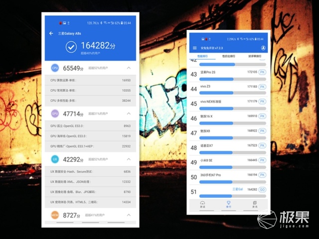 安兔兔跑分164282,比vivo X23要高一些,二者的差距基本上等同于骁龙710和670的分数差距。A8s排名51位,不是配置不给力,实在是国产机太强大了。