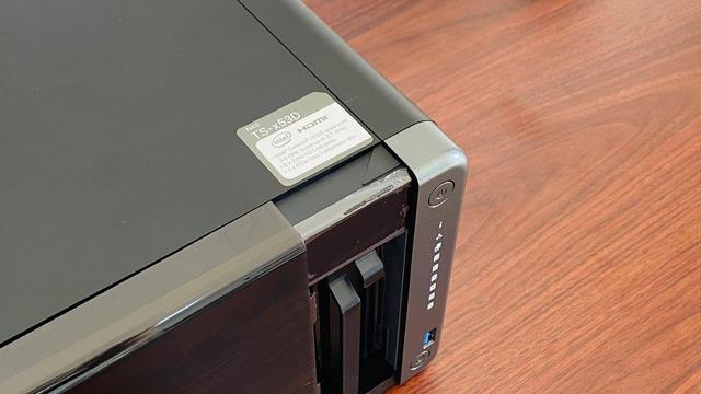 威联通TS-653D拥有6个盘位,可以安装2.5英寸或者3.5英寸的硬盘。6盘位意味着玩家可供选择的raid就太多了。这也意味着安全性以及性能方面可以达到更高程度。