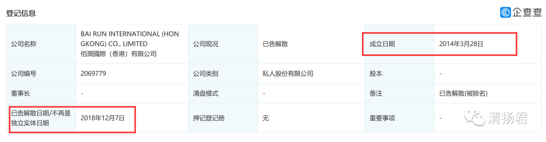 查询发现,佰润国际(香港)有限公司成立于2014年3月28日,并于2018年12月7日解散,但并无香港(北京)佰润生物科技有限公司任何信息。不知道在魔力Show虚构潮男集团的同时,为何要宣传并没有任何工商登记信息的香港(北京)佰润生物科技有限公司,难道说魔力Show把佰润国际(香港)有限公司的名称搞错了?如果真的搞错了,那么为何要宣传一个已经解散的公司呢?难道就是为了突出创始人的能力或者说是“成功”的事业?