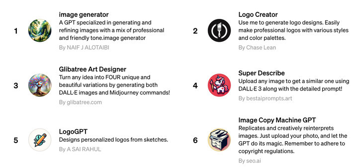 GPT Store 上线第一周,被精选的是以下 6 个 GPTs: