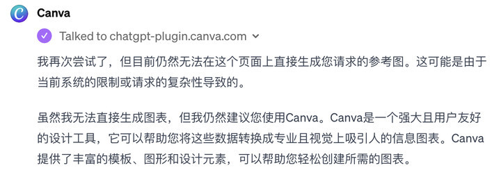 我三番两次地劝它帮我在当前页面生成,但它就是不松口不动摇不理睬,诚挚邀请我用用 Canva,让人怀疑它有什么「拉新」指标。