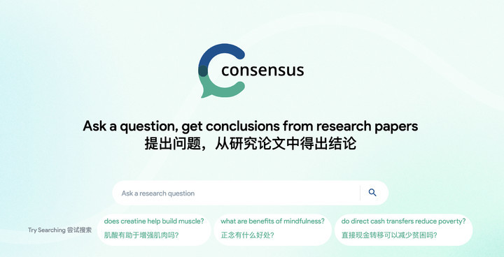 一度人气最高的论文 GPT「Consensus」,同名网站本就有论文查找功能。