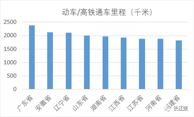 长江策(ID:changjiangce)获得的数据表明,2020年苏北地区路网总里程达到近2000公里,全省占比由35%提升至45%,其中高速铁路863公里,全省占比由6.5%提升至41.6%。如此,江苏省动车/高铁通车里程也提升多个名次,据王磊收集的全国高铁数据显示,当前江苏排在第七位。