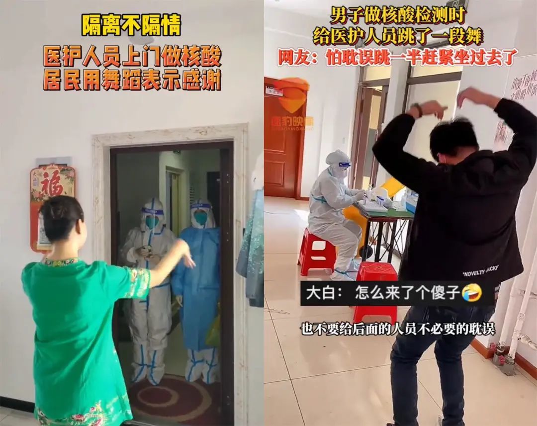 想想那些困在疫情中的城市和同胞们, 敢情最严肃的核酸现场,是你们斗舞的舞台?