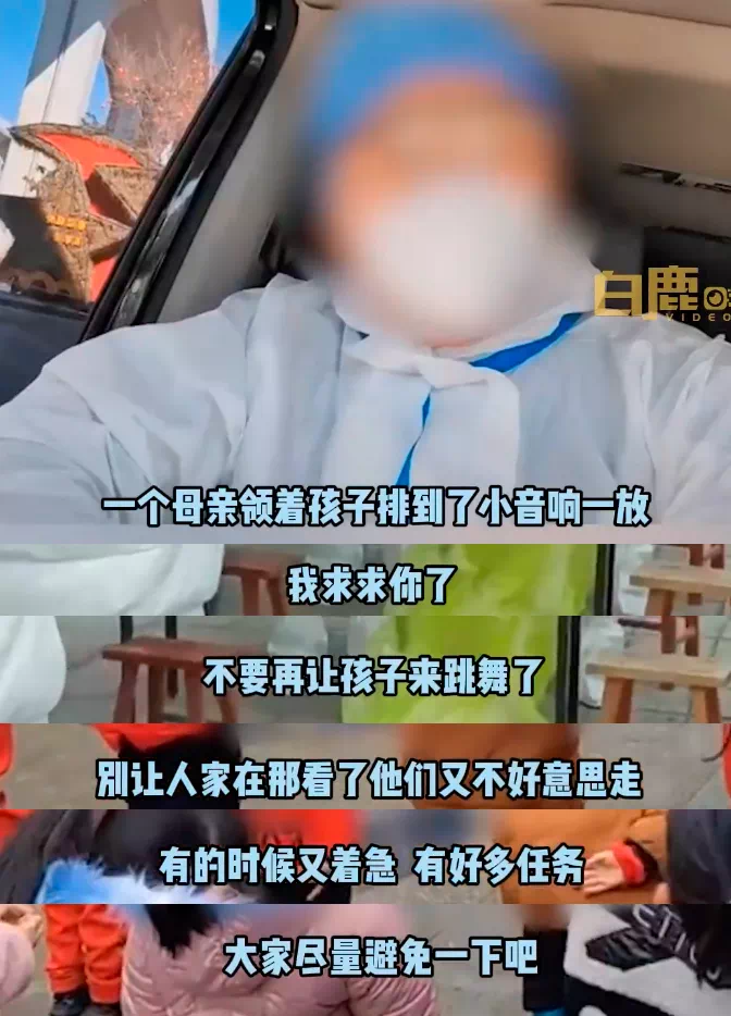 结果现实局面是:小孩在这儿表演,旁边还有人在做核酸,这合理吗?这安全吗?